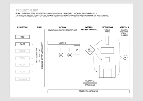 To streamline operations, I consolidated everything into a single project tracking tool and built a system that could manage a wide range of requests and placements. I also began mapping out an optimal workflow for producing materials for licensed content.